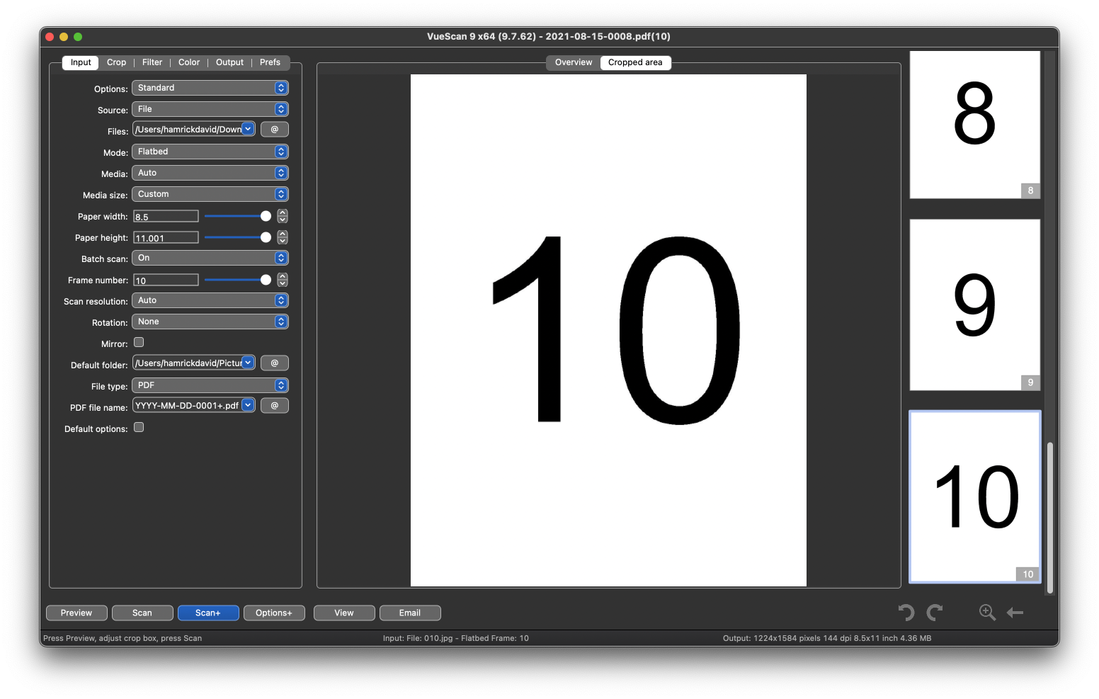 Let’s say there was a document in the wrong position when you scanned 50 pages. You no longer have to reach for an external image editor (like Preview on the mac) or scan the whole document again. Now you can just click the thumbnail and drag it to the position you want it. Changes you make will be near instantly reflected in the PDF you have saved. So if you quit VueScan you don’t need to explicitly save changes.