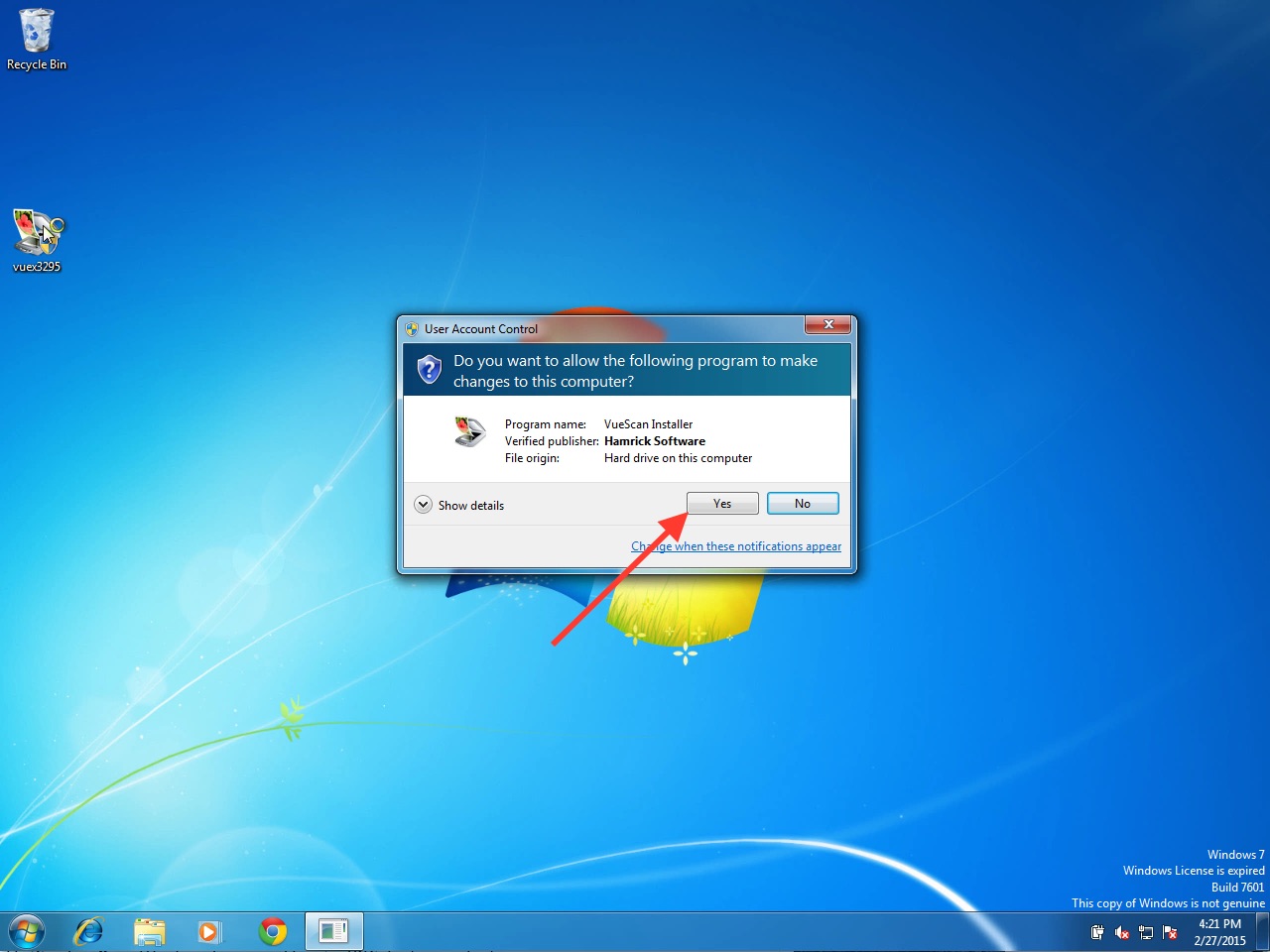 You may be asked if you want to allow the VueScan make changes to this computer. Press yes.